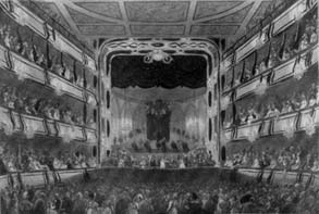 1808 view of the Covent Garden Theatre, after an engraving by S. Rawle, from H. Saxe Wyndham. Annals of Covent Garden Theatre from 1732 to 1897,